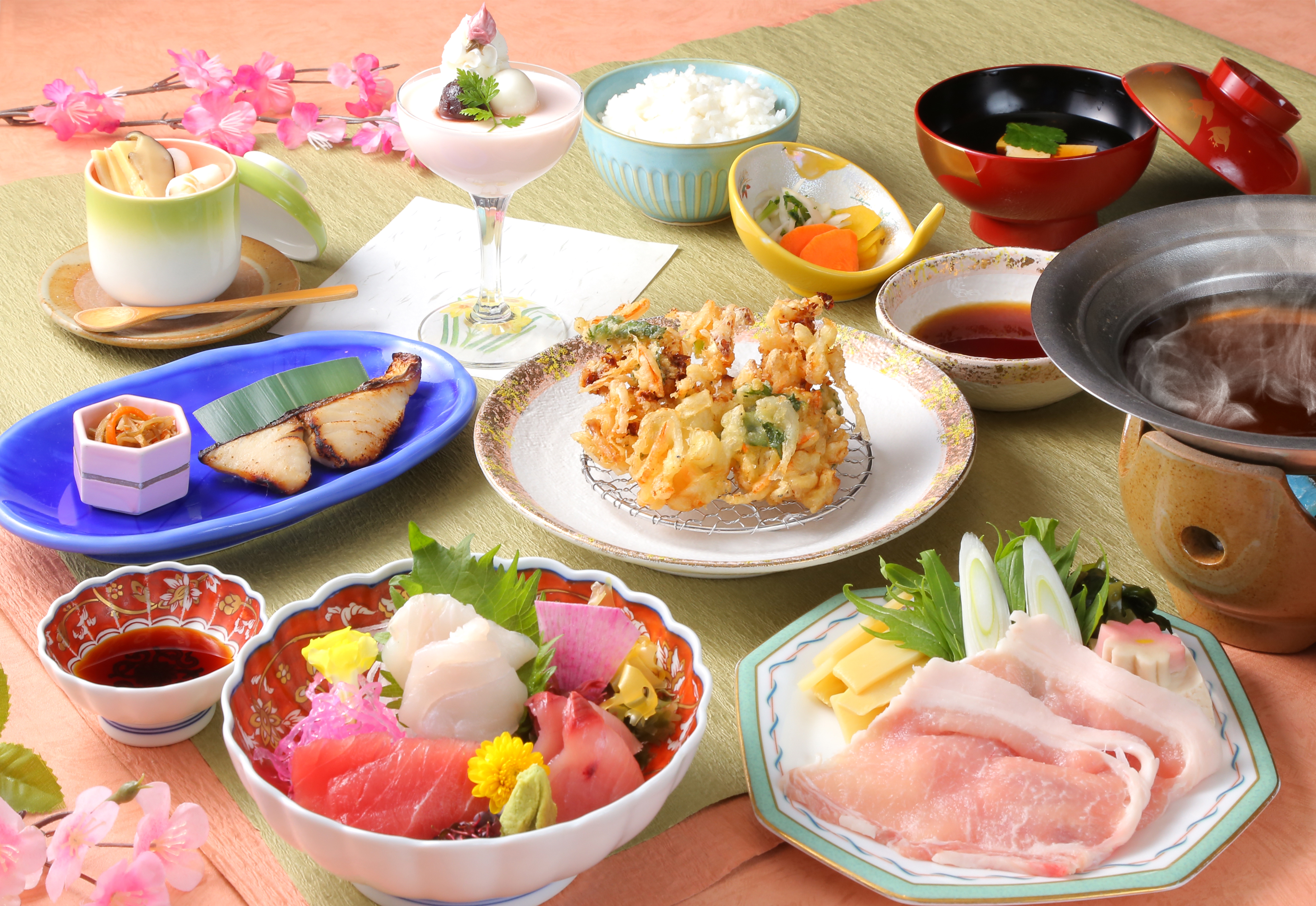 鰆の漬け焼きや若竹鍋、白魚と浅利のかき揚げなど、春の芽吹きを感じながら旬の味覚をご堪能いただけます。